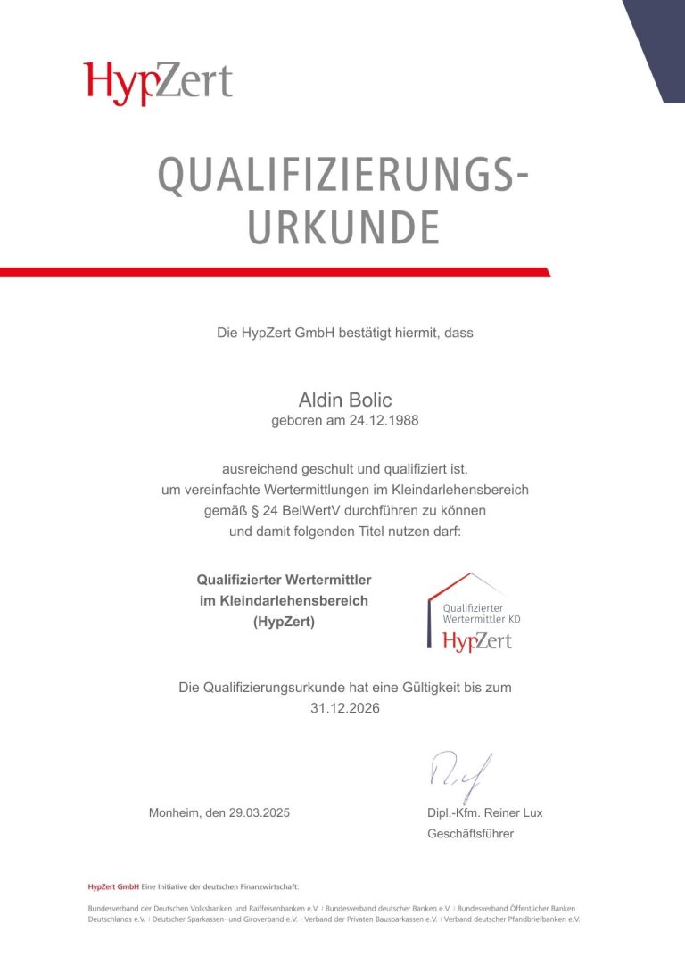 Genau hier liegt der Unterschied: Mit der AB-HAUSVERWALTUNG haben Sie einen Partner, der seine Expertise stichhaltig nachweisen kann. Ich habe meine Qualifikationen – vom B.A. Immobilienwirtschaft bis zur Immobilienwertermittlung – mehrmals durch unabhängige Institutionen prüfen und bestätigen lassen.